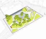 1.城市花園中間是一個公共綠地景觀,高差較兩側(cè)低,以中間的開放空間鏈接南北兩側(cè)的社區(qū)。