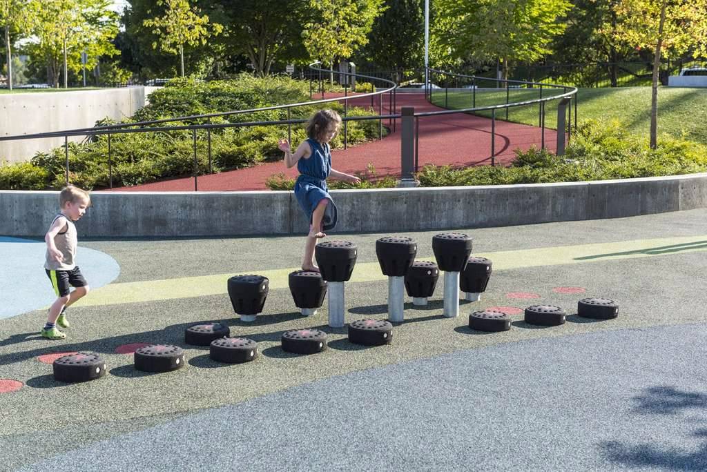 2.ink studio: 與塞勒姆醫(yī)院門診康復(fù)中心合作開發(fā)的“讓我們都玩”適應(yīng)性游樂場(chǎng)既是公綜合能力游樂場(chǎng),也是康復(fù)中心的兒科和成人治療設(shè)施。與康復(fù)治療師、兒童和家庭密切合作,適應(yīng)性游樂場(chǎng)的所有元素都被設(shè)計(jì)成在一個(gè)安全、歡迎公眾的環(huán)境中,支持可衡量的認(rèn)知、社會(huì)、行為和身體治療價(jià)值。自定義的游戲元素包括攀爬結(jié)構(gòu),可移動(dòng)的滑梯,專業(yè)的秋千,旋轉(zhuǎn)器,彈跳臺(tái),感官元素和水協(xié)作游戲。一個(gè)蜿蜒的軌道圍繞著操場(chǎng),為病人提供了一個(gè)可進(jìn)入的電路來(lái)建立運(yùn)動(dòng)技能。一塊磚砌的拱門和解釋性的鑲板,紀(jì)念俄勒岡州一所盲人學(xué)校。