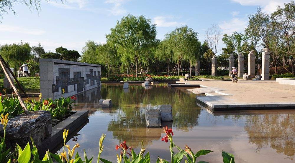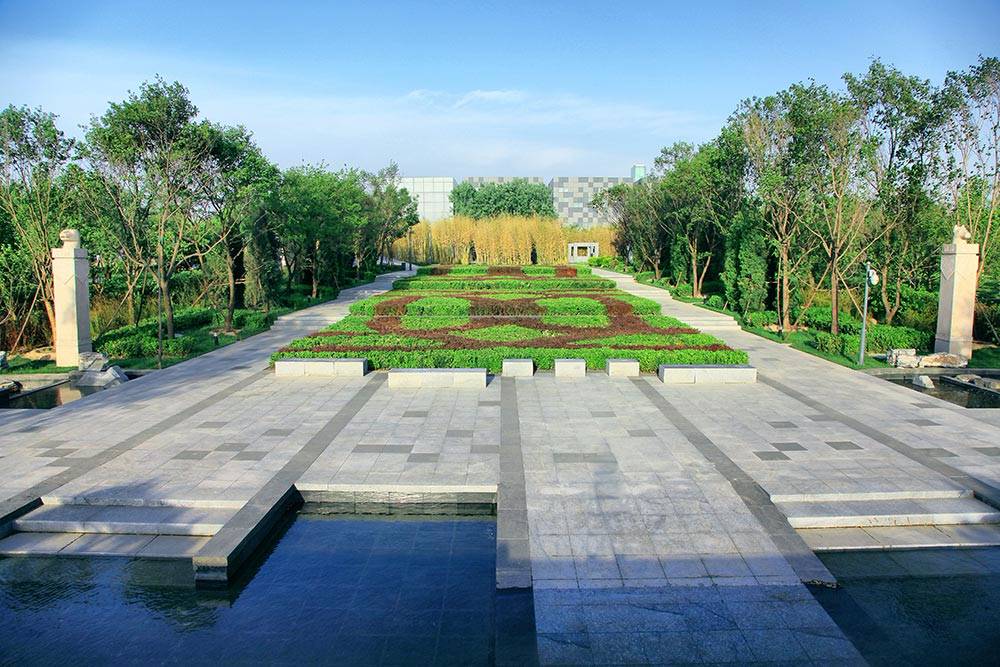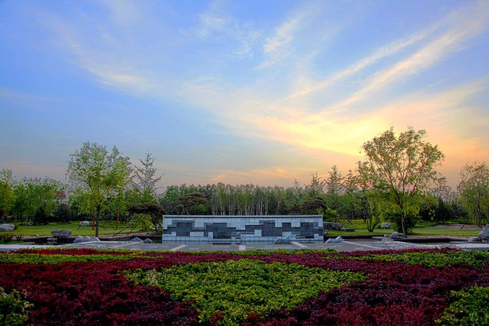 5.53公頃的公園位于河北固安工業(yè)產(chǎn)業(yè)園區(qū)中心,依固安規(guī)劃展館而建,在京開高速旁。建筑設(shè)計(jì)反映出固安的城市文脈與城市肌理。用石材和玻璃編織而成的精致紋理模擬體現(xiàn)固安“柳編之鄉(xiāng)”的歷史文化特色。