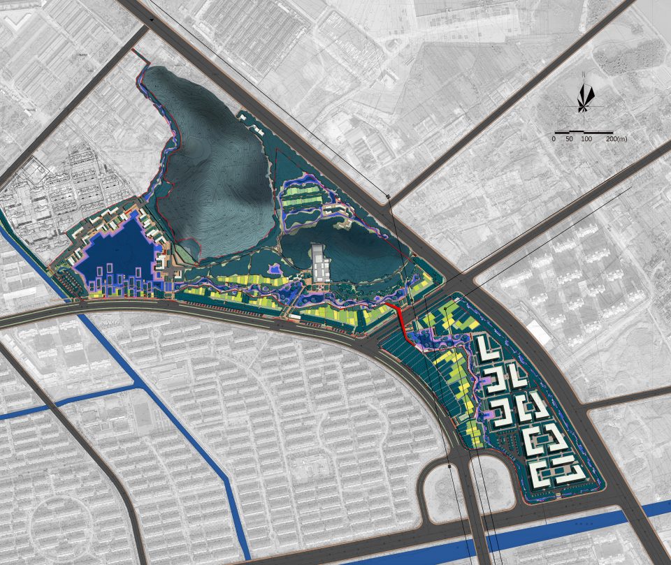 如何保護及改善場地風貌并設計與場地結合的景觀環(huán)境?場地地處高新開發(fā)區(qū)入口,如何彰顯城市門戶特色?場地周邊設有大型農民動遷小區(qū),如何設計滿足農民需求的景觀環(huán)境,延續(xù)場地記憶及土地本有功能,留住鄉(xiāng)愁?與此同時,如何積極響應海綿城市政策,將其落實到最小單元的地塊建設中,保證宏觀區(qū)域的海綿效應?
