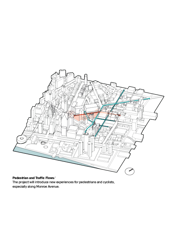 SHL 與當(dāng)?shù)亻_發(fā)商 Bedrock 和本地建筑師 Neumann Smith 進(jìn)行合作,將門羅區(qū)改造成位于城市歷史街區(qū)的交叉口,面積達(dá)到12541平方米。它連接著市中心以及周邊地區(qū),為今后的發(fā)展打開了通道。娛樂場所、零售店、食品市場、體育設(shè)施和展覽場地將會吸引各種人,而周邊的住戶會讓這片商區(qū)夜夜笙歌。