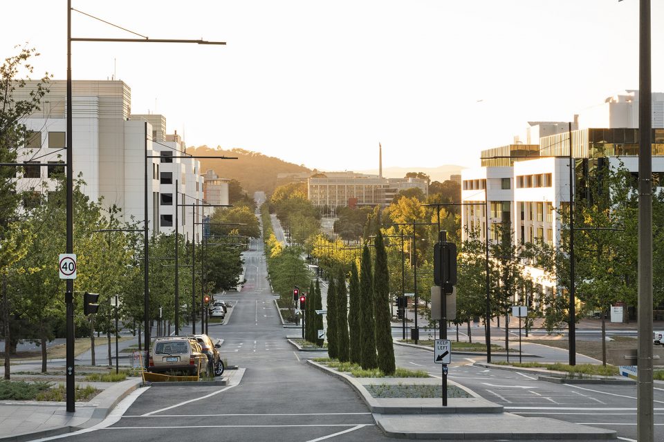 這處城市路網(wǎng)中最引人注目的區(qū)域是 Grand Boulevard 大道,也被稱之為 Constitution Avenue 憲法大道。街道景觀的建設(shè)效仿了世界上最大的林蔭大道,將承載城市中密度最高的商業(yè)和住宅區(qū)的基礎(chǔ)交通。同時(shí),Lake Burley Griffin 附近的娛樂和文化建筑區(qū)域也會(huì)在這個(gè)大道旁選址建設(shè)。