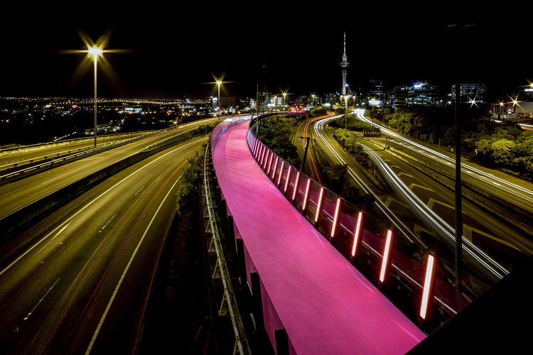 LightPathAKL變換了600米的多余的高速路基礎(chǔ)設(shè)施變成了一個(gè)充滿(mǎn)活力的自行車(chē)道,從而成為了補(bǔ)全開(kāi)始的時(shí)候研究了典型的奧克蘭城市自行車(chē)道體系的重要連接。LightPathAKL 項(xiàng)目開(kāi)始階段的研究確定了之前未被使用的高速匝道的調(diào)整為城市內(nèi)自行車(chē)西部線(xiàn)路和補(bǔ)全奧克蘭市區(qū)自行車(chē)網(wǎng)絡(luò)的使用潛力。項(xiàng)目在建筑層面同時(shí)兼顧了宏觀和微觀的尺度——城市與個(gè)人。同時(shí)也將項(xiàng)目作為城市藝術(shù)和城市設(shè)計(jì)的部分并重考慮。在城市尺度,項(xiàng)目盡管未使用,今世一個(gè)貫穿奧克蘭的高速系統(tǒng)更為宏觀和多層級(jí)影響的一條單線(xiàn)。為了在更廣闊的城市尺度立面營(yíng)造出沖擊力,項(xiàng)目采用了簡(jiǎn)單又大膽的策略。