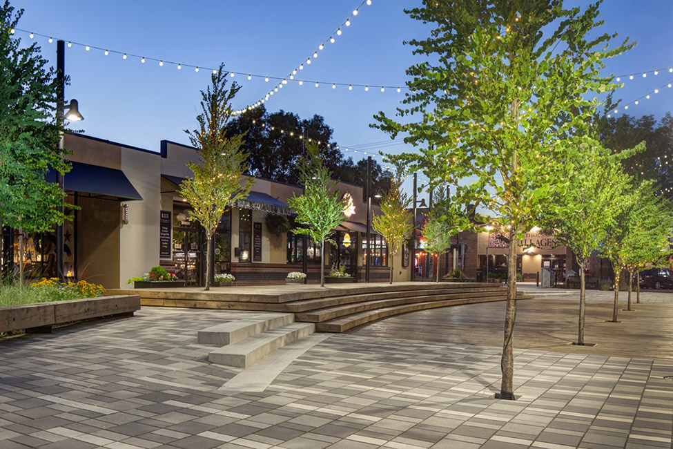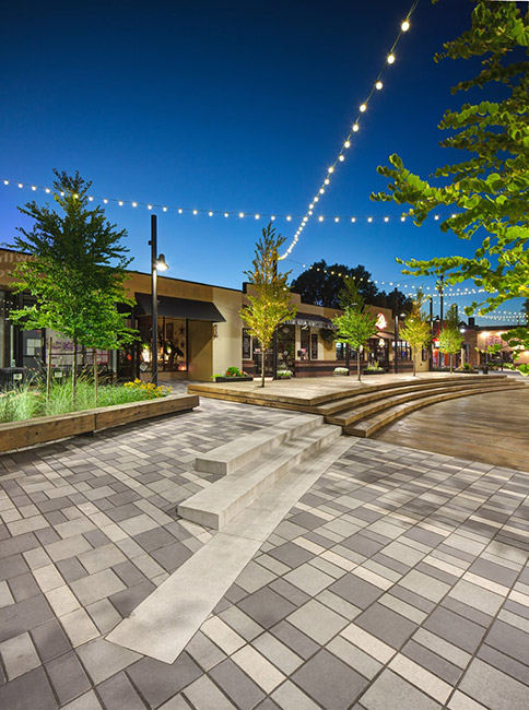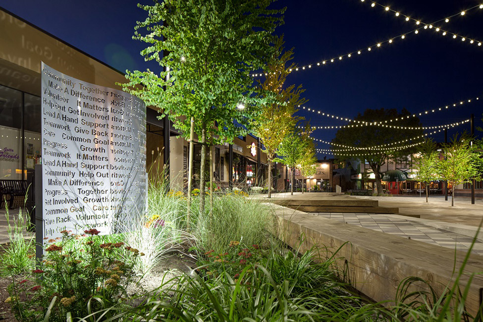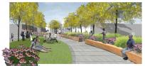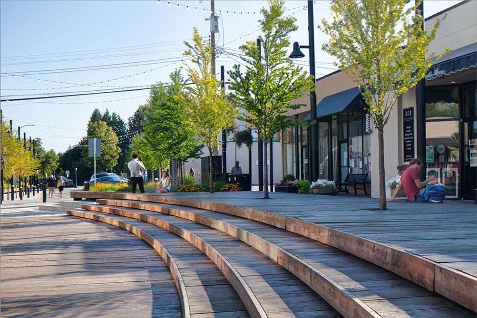 HAPA Collaborative事務(wù)所和蘭利市合作復(fù)興麥克伯尼道,作為蘭利市區(qū)中心的一個社交空間。該改造項(xiàng)目加強(qiáng)了這條道路上人行道之間的連接性、建造靈活空間來滿足各種各樣的需求以及采用了可滲透性路面、耐旱植被和雨水過濾系統(tǒng),作為該城市可持續(xù)性規(guī)劃的一部分。該設(shè)計(jì)把具有歷史價值的市區(qū)菲沙高速公路與新道格拉斯公園的圓形劇場和紀(jì)念碑連接起來,還設(shè)有一系列的拱形長凳、階梯和植被覆蓋區(qū),在道路的中間構(gòu)成了新的社交空間。這些空間包括一個抬高的中央木板區(qū)、一個草坪區(qū)和位于該區(qū)域北端的一個線性水廣場。這個方案也整合了街道的停車場,通過合并臨近的Douglas Crescent上的斜角停車位減少了26個停車位,突出了整個區(qū)域作為唯一一個人行公共空間的特點(diǎn)。
