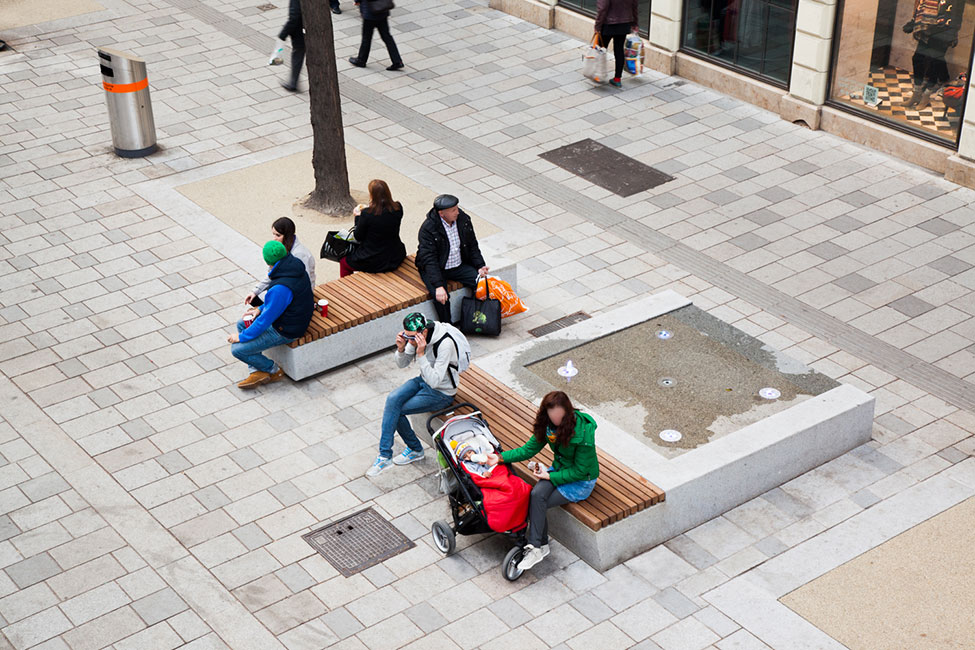 這個(gè)改造工程是在和未來使用者進(jìn)行討論之后實(shí)行的,這場交談是通過專門負(fù)責(zé)程序參與活動(dòng)的維也納機(jī)構(gòu)stadtland組織的。去年,這家機(jī)構(gòu)和維也納不同學(xué)科的專家合作,為這個(gè)購物街設(shè)計(jì)一個(gè)盡量簡單但有未來趨勢的方案。設(shè)計(jì)的出發(fā)點(diǎn)是把有2條人行道的普通購物街轉(zhuǎn)變成一個(gè)都市化的購物街,符合歐洲首府城市的水平。