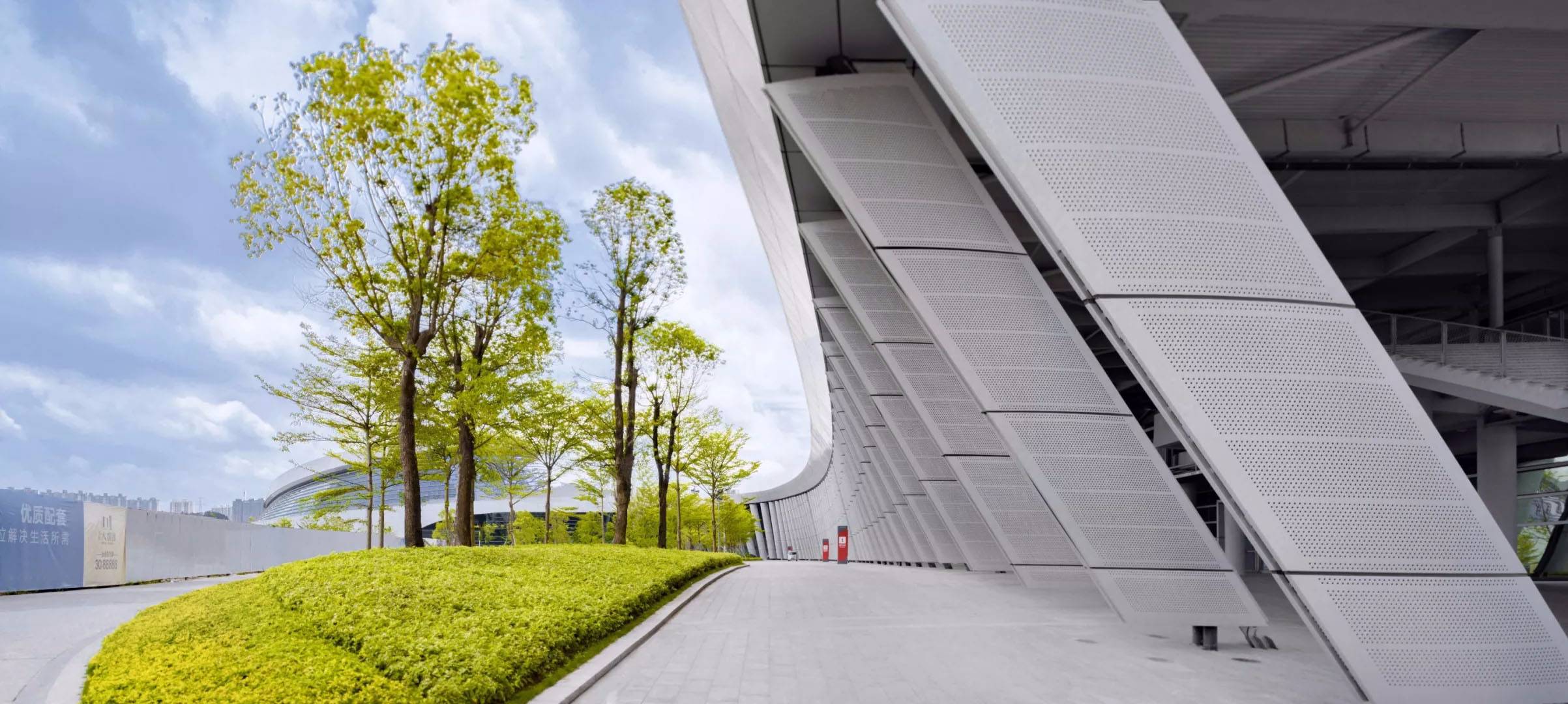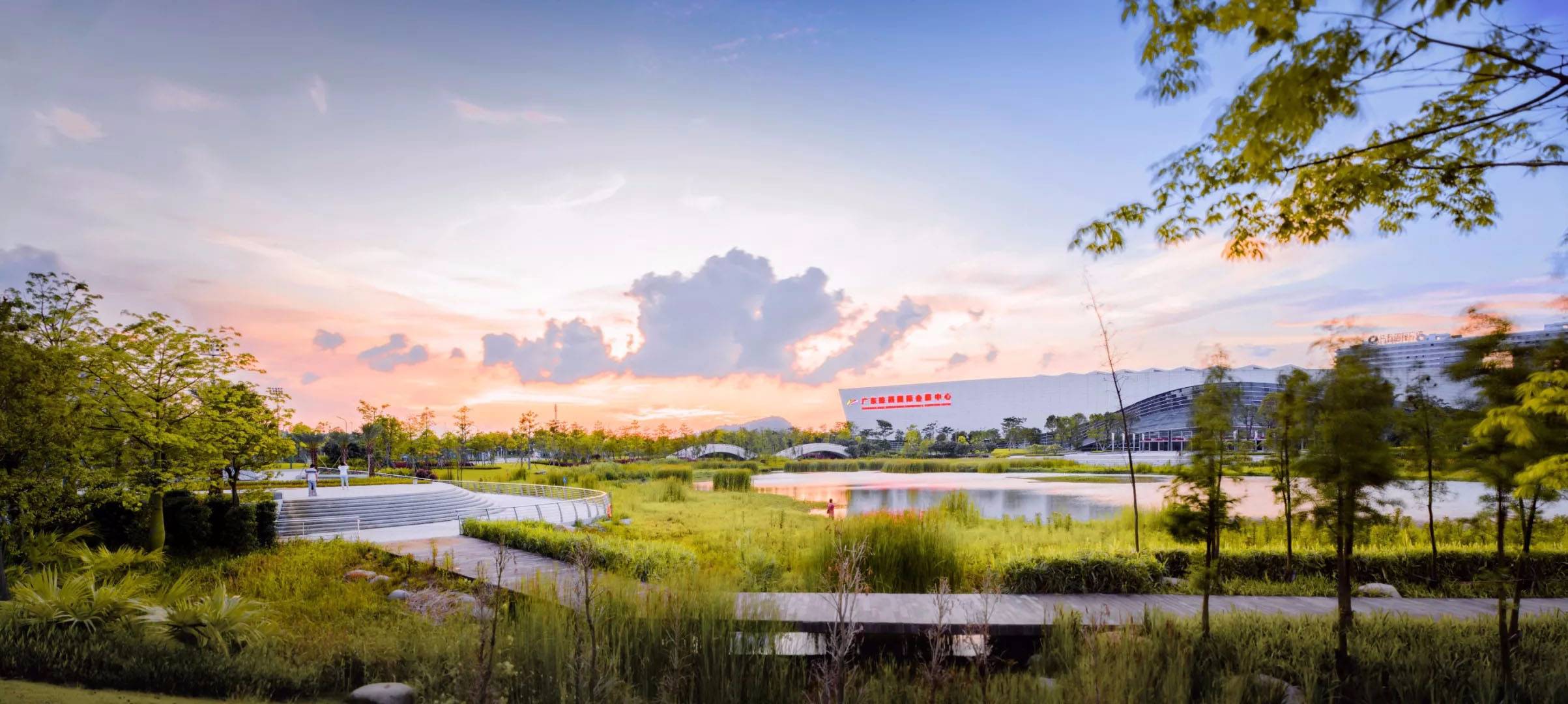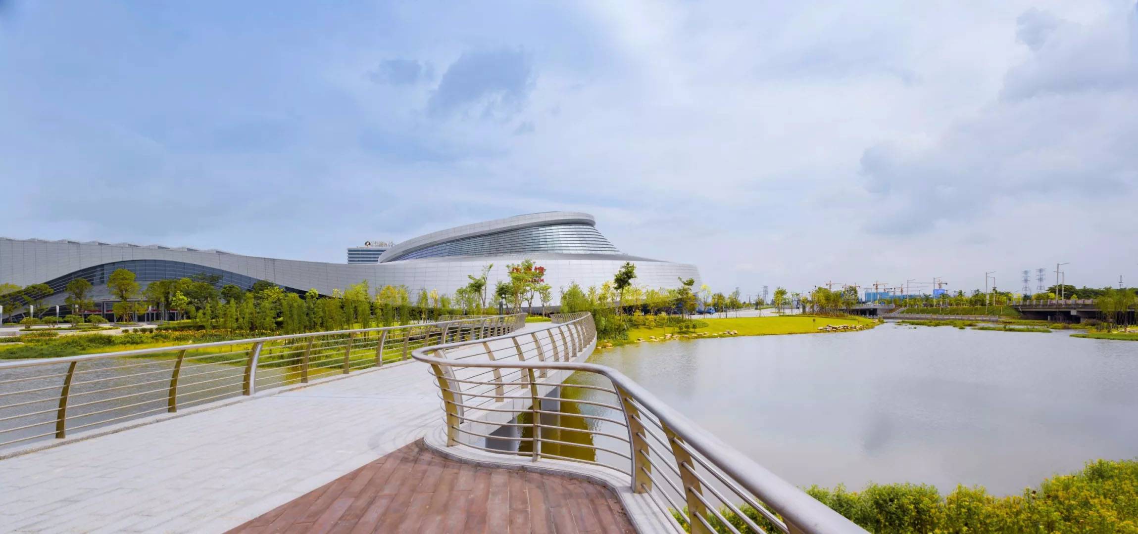 會(huì)展中心場館的周邊集商業(yè)、休閑功能于一體,設(shè)置會(huì)展廣場、陽光草坡休閑棧道等開放空間,提供完善舒適的休閑體驗(yàn)系統(tǒng)。