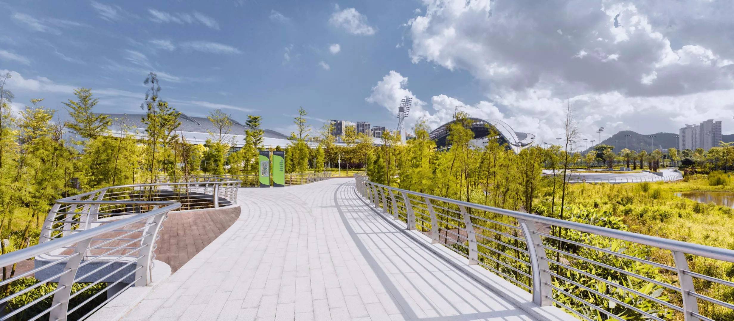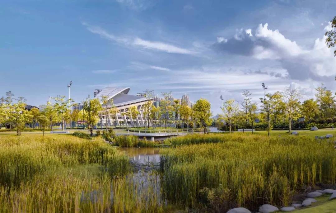 江門體育中心景觀不僅是多功能體育活動(dòng)的公共空間,同時(shí)也是各種自然界生長過程的“載體”,支持生命的存在和延續(xù)。體育中心的未來將秉承其自然、開放、兼容、多元的特性,成為一個(gè)共享的空間,一個(gè)公共的花園。