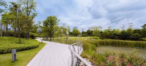 園區(qū)內(nèi)植物設(shè)計(jì)遵循生態(tài)、健康、現(xiàn)代的原則,形成一心三帶多島的綠植結(jié)構(gòu)。