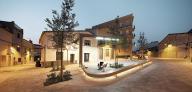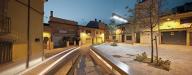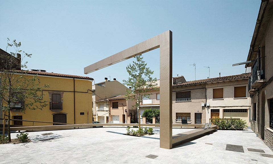 一個單體彎曲,抬起,再彎折,承擔了大部分戶外公共設施的職責。在夜晚,內(nèi)部的LED燈泡發(fā)出明亮的光彩,在透過其金屬表皮上的小孔散射出來。不論黑夜或白晝,它都守護在這里,區(qū)分著行人和車輛各自的領域。單體的上方分布著石材和鋁板做成的座椅。在盡端,它向天空延伸,然后彎折平行于地面,在夜晚照亮著整個廣場區(qū)域。