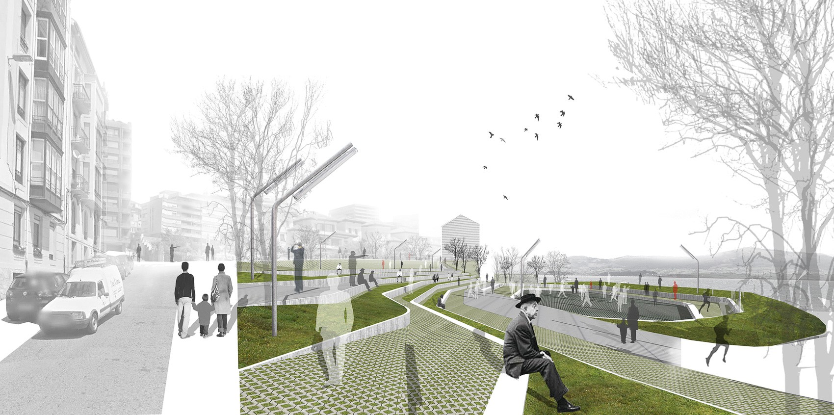 該項目意在產(chǎn)生一個能夠步行和散步的城市空間,在該項目的邊界上采取了4個基本規(guī)劃: