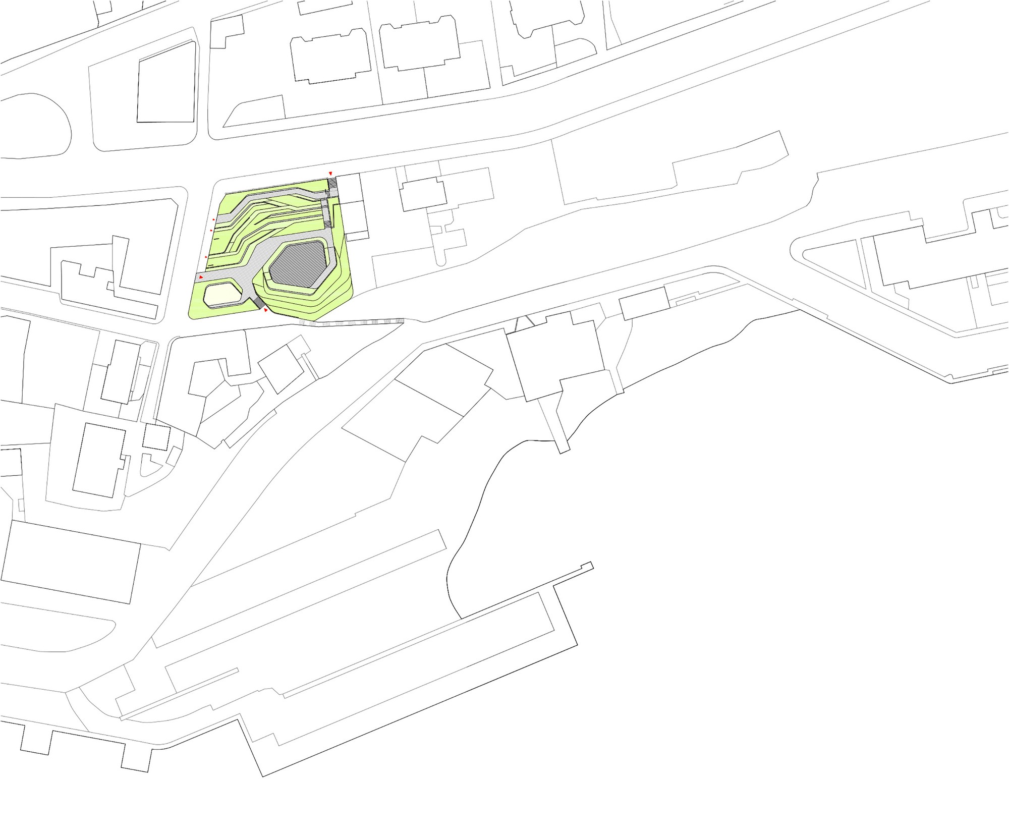 3.從該項目的最低層進(jìn)入主道,把它作為穿過該廣場的開端,以及在該項目的較低層與該城市的連接區(qū)。