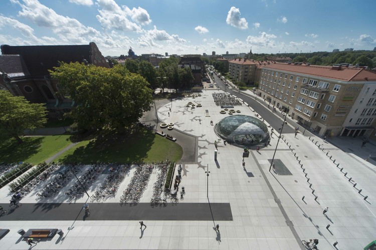 White 事務(wù)所一直是兩個主要利益相關(guān)者——城市和教會的主要調(diào)解人。由于城市和教會的密切合作,我們努力消除城市和教會擁有的公共空間的界限。藝術(shù)家 Ebba Matz 作為設(shè)計團隊的一部分,主要的貢獻是道路上的刺狀圖案鋪裝,指向 St. Johannes 教堂(又稱為玫瑰教堂)。這座教堂是馬爾默的青年教會所在,鋪裝圖案的設(shè)計靈感來源于新藝術(shù)運動時期自然的表達。項目通過促進活躍的公共交通,如火車,公共汽車和自行車的使用,以及增加環(huán)境工程師在重要決策(燈光和材料選擇)的參與度,展現(xiàn)了馬爾默致力于實現(xiàn)城市可持續(xù)發(fā)展的承諾。公共交通的基礎(chǔ)設(shè)施是這個項目不可或缺的一部分,共享空間的設(shè)計讓行人們自由穿行于繁忙的城市中心。