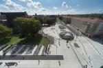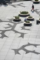 在 Konsthallstorget(美術(shù)館廣場)我們創(chuàng)造了更為寬敞的公共空間。該美術(shù)館是馬爾默最有名的建筑之一,由 Klas Anselm 設(shè)計,并于1975年完成。該建筑現(xiàn)已經(jīng)成為文化歷史文物,受到政府保護。美術(shù)館的工作人員是金融市場活躍的利益相關(guān)者。Konsthall 廣場的地面用可移動的混凝土鋪裝,由2*3米的模塊組成。地面可以很容易被改造,或更換某一部分來作為展覽和臨時活動的場地。這片廣場已經(jīng)深深扎根于馬爾默的居民心中,他們在這個廣場上玩滑板,制作電影和表演。這里有30平方米的噴泉,供兒童玩耍,還有一個混凝土圓盤,可作為座椅和舞臺使用。夜幕降臨時,圓盤會變成一個發(fā)光的臺地。