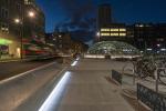 位于馬爾默市中心的 Triangeln 區(qū)域曾經(jīng)是一處安靜的地方,遠離繁忙的主街道。新的城市隧道站讓該區(qū)成為服務(wù)37000乘客的交通樞紐?,F(xiàn)在,它是城市最活躍的地段。為了滿足新增人流量和人們的需求,馬爾默市舉辦了一次競賽,以在 Triangeln 周圍設(shè)計新的城市空間。Whites 事務(wù)所設(shè)計了兩個連接的空間,可以同時在高峰時段的工作日和安寧平靜的周日清晨被使用。“我們將 Triangeln 站的周邊區(qū)域看作每個人都可以使用的'開放舞臺'。精美的現(xiàn)澆混凝土鋪裝和燈光和座椅等細節(jié)使空間序列統(tǒng)一和諧。其目標(biāo)是設(shè)計出優(yōu)雅且奢華的鋪裝效果。” 事務(wù)所的 Niels De Bruin 說。