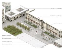 設(shè)計這個項目的重要前提,是對廣場邊緣和外立面設(shè)計的重視,因此對于周圍建筑遺產(chǎn)外立面的思考是該場地人文精神的體現(xiàn)。為實現(xiàn)這一點,水平方向?qū)⒑喖s設(shè)計,石頭鋪裝的細微變化來劃分重要區(qū)域,但不會與現(xiàn)有建筑風格沖突。新的設(shè)計將填補原有的真空,將整個環(huán)境統(tǒng)一起來。這個廣場將變成一個安靜的休憩點,人們在穿行圣地亞哥城市中心時,可以在此駐足去欣賞,感受歷史建筑的魅力。