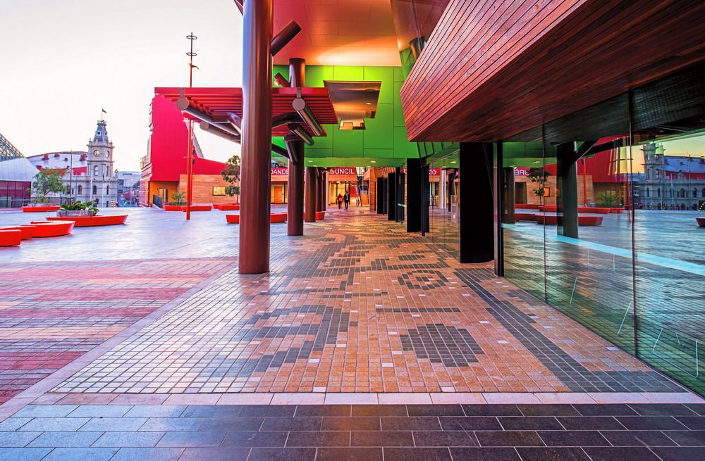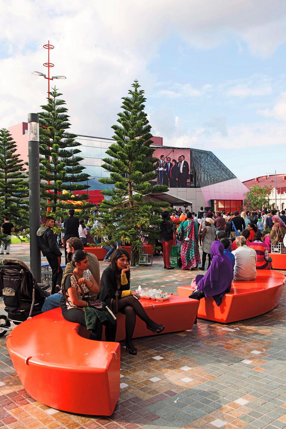 嶄新的丹德農(nóng)市政大樓是復(fù)興后的丹德農(nóng)中心區(qū)的新公共核心。這里的社區(qū)空間、圖書館、市政服務(wù)機(jī)構(gòu)和商店搭配組合,構(gòu)成一個(gè)城市公共廣場(chǎng),是社區(qū)交流場(chǎng)所和新城區(qū)建設(shè)的主要區(qū)域。設(shè)計(jì)體現(xiàn)了國(guó)際大都市中心的概念,這里是人們能夠分享獨(dú)特的澳大利亞歸屬感的地方。設(shè)計(jì)師所探究的形式、圖案和形狀與文化體驗(yàn)的歷史淵源交相輝映,設(shè)計(jì)涵蓋了澳洲烏蘭德杰瑞土著居民的傳統(tǒng)生活文化,同時(shí)體現(xiàn)了來自非洲、亞洲、中東和其他地方的移民的生活文化。這種設(shè)計(jì)探索地面、墻壁、臺(tái)階、座椅和植物所蘊(yùn)涵的深層潛力,形成一系列“自然藝術(shù)品”,勾起人們對(duì)場(chǎng)地的歷史、丹德農(nóng)住宅區(qū)、近期改變的建筑形式和濃郁的異國(guó)風(fēng)情的回憶。項(xiàng)目在丹德農(nóng)中心區(qū)建立了一個(gè)獨(dú)特的樹棲景觀。該項(xiàng)目位于城市的中心區(qū),被郁郁蔥蔥的大樹所覆蓋。該區(qū)的目標(biāo)是種植稀有的、高貴的樹種,發(fā)揮其顯著的民用功能,創(chuàng)造持久的城市標(biāo)志和意義深遠(yuǎn)的、有生命力的紀(jì)念碑,以此增強(qiáng)民族自豪感和信心。
