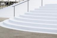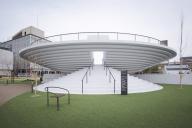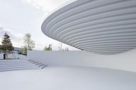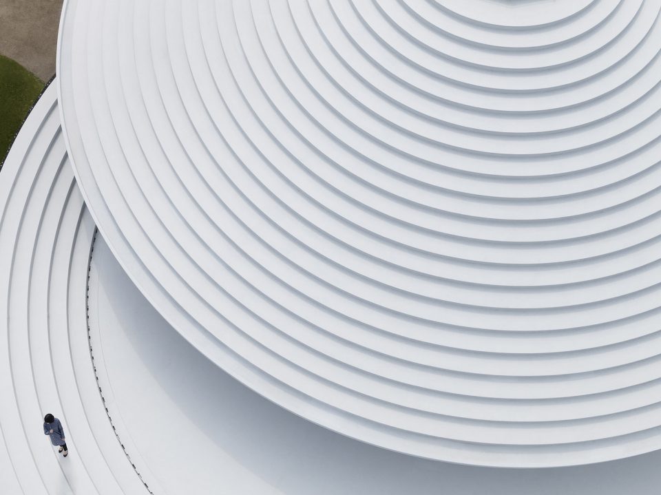 在建設(shè)建設(shè)廣場(chǎng)中圓形結(jié)構(gòu)的過(guò)程中,披薩形的混凝土預(yù)制模具被裝配在一起。由于混凝土預(yù)制模具是在工廠中完成建設(shè),然后在運(yùn)輸?shù)浆F(xiàn)場(chǎng)進(jìn)行裝配的,這保證了施工結(jié)構(gòu)的精確。同時(shí)模具也可以重復(fù)利用,確保合理的施工預(yù)算。預(yù)制部件的裝配采用了橋梁建設(shè)中的大型起重機(jī)。這樣的設(shè)計(jì)可以在不使用柱或梁等結(jié)構(gòu)的情況下創(chuàng)造大型空間。圓形的型態(tài)保證了所有方向施力的穩(wěn)定性,為空間提供了良好的平衡。
