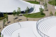 天理市的周邊地區(qū)有一些日本舊時(shí)代的墳?zāi)?,被?dāng)?shù)厝朔Q(chēng)為“cofun”。這是當(dāng)?shù)匾粋€(gè)美麗、不容錯(cuò)過(guò)的景觀,設(shè)計(jì)師希望把他們?nèi)谌氤鞘腥粘5纳羁臻g。廣場(chǎng)上景觀的設(shè)計(jì)靈感就來(lái)源于這些“cofun”,他們同時(shí)也象征著該地區(qū)特色的地貌景觀:地面環(huán)山的奈良盆地。