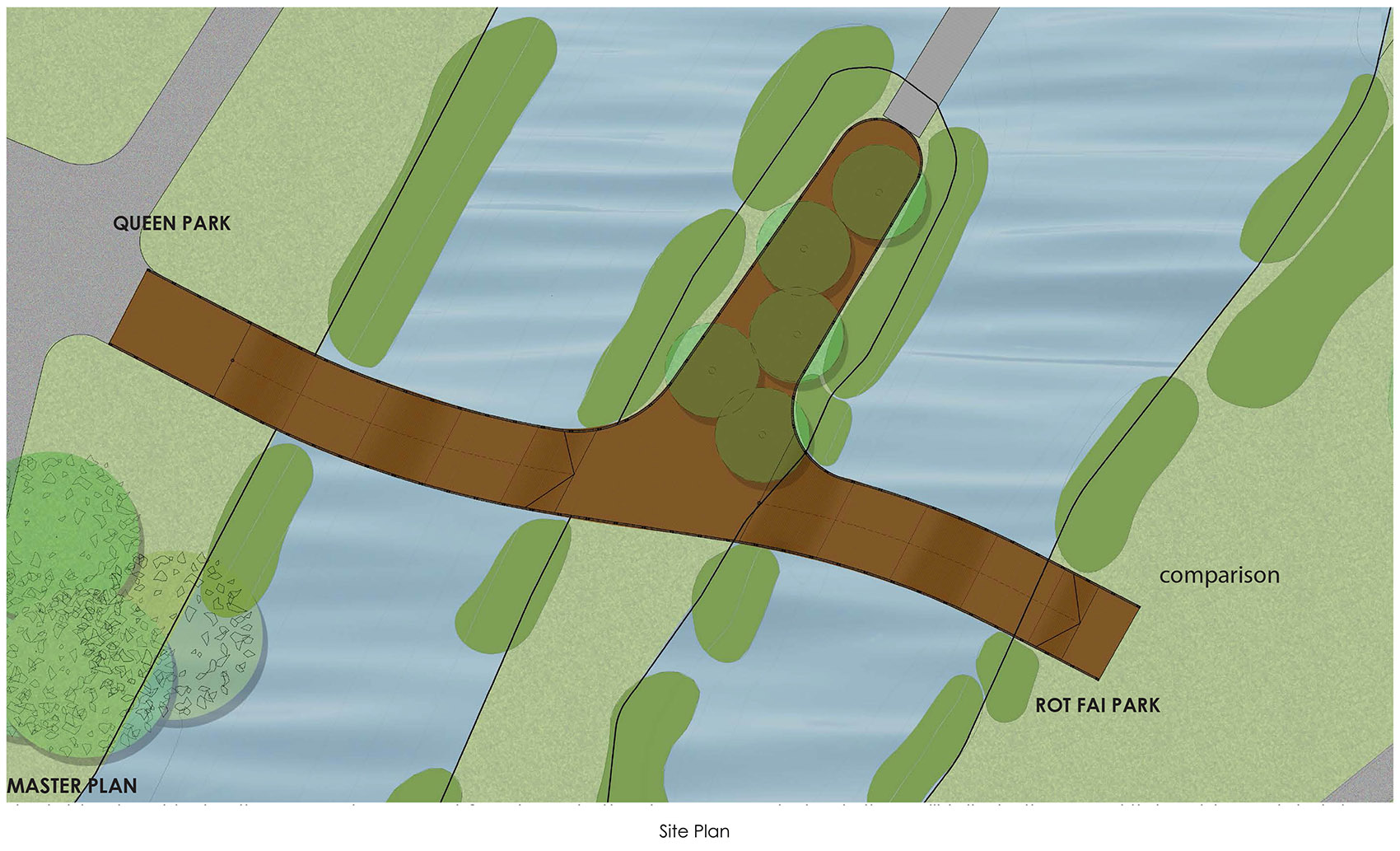 由于原計劃遲遲不能推行,設(shè)計師在2014年向董事會提出將鳥類棲息處設(shè)計在Queen公園羽翼橋的最南端,以作為總體規(guī)劃實施前的實驗項目。經(jīng)過兩年漫長的審批程序,該項目獲得公共公園委員會及H.M. Queen Sirikit公園基金會對于園林景觀60,000美金的專項資金。終于在2016年8月,羽翼橋正式向公眾開放。