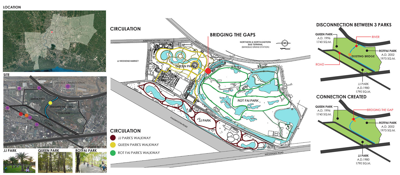 在Chatuchak街區(qū),坐落著三個緊鄰彼此的公園。這三座公園Rotfai公園, H.M. Queen Sirikit公園(又名Queen公園)和Jatujak公園(又名JJ公園)。盡管Queen公園為H.M. Queen Sirikit Park基金會所有,這三座公園均受曼谷公共花園委員會(BMA)管制。這三座公園分別于2002年,1992年和1980年向公眾開放。三座公園總面積116公頃,它們互相連接形成曼谷市區(qū)的最大公園。該公園為Chatuchak街區(qū) Queen公園西部,即將在2019年建成的交通運輸樞紐帶來無限潛能。未來的城市發(fā)展使城市密度不斷增大,對城市綠地的需求也不斷增加。