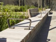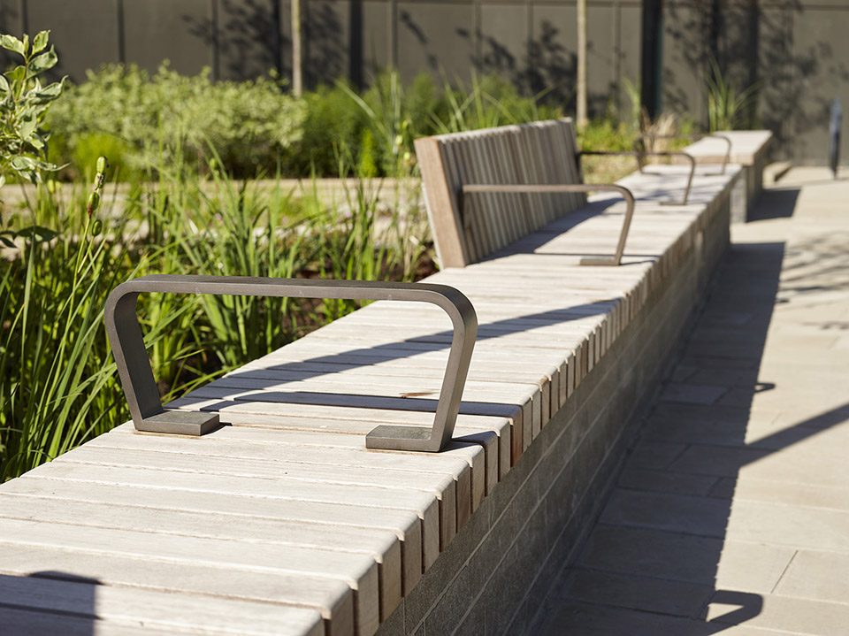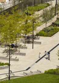 休憩長(zhǎng)椅是公園最基本的組成部分,好的長(zhǎng)椅設(shè)計(jì)能留住人的腳步。Sovereign Square的一系列長(zhǎng)椅設(shè)計(jì)既可以讓游人在夏季環(huán)繞而坐,又可以在冬季尋求一處避風(fēng)港灣。一些隱藏在綠植中的安靜空間讓人可以隨意坐臥,或聊天或討論。另一些尺度合宜的長(zhǎng)椅滿足不同人的需要,不論你是老人,兒童,抑或有身體障礙,都可以在此找到最舒適的休憩姿勢(shì)。如此,該公園成為了四季皆宜的公共空間。與Honey Locust相鄰的座椅成為該公共空間最受歡迎的地方。該處茂密的樹(shù)叢和墨綠的色彩,在樹(shù)下映射出斑駁光影。樹(shù)影隨風(fēng)擺動(dòng),在地面呈現(xiàn)出活潑悅動(dòng)的畫(huà)面。設(shè)計(jì)師將一處公共環(huán)境設(shè)計(jì)出多種不同的空間體驗(yàn),吸引人不斷走進(jìn),拉近了人與自然的距離。