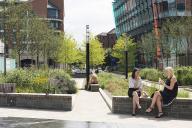 公園地表的溪水緩緩流向河中,與未來(lái)公路下的水道相連。人在其旁邊穿行,如同順著河流漫步一般,留下斑駁的人影與生動(dòng)的生活氣息。孩子在淺淺的水面上跳躍著,擊打著濺起水花,比在人造噴泉旁玩耍更自如,也更加安全。流水和綠植讓公園環(huán)境更加富有動(dòng)態(tài)的美感和靜態(tài)的平和,吸引人駐足。Sovereign Square激活了利茲的生活空間,越來(lái)越多的人選擇在此游玩,而不置可否的是,當(dāng)全部規(guī)劃發(fā)展實(shí)現(xiàn)的時(shí)候,這座城市里的公共空間將更加受到周?chē)用竦那嗖A。