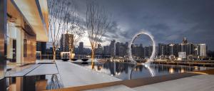 項目與其說:用一種極簡的現(xiàn)代設計塑造全新的空間風范,我們可能會更傾向「用留白的主張,堅守都市靈魂的一處安放」?;谶@份觀念,甚至影響了整個建筑空間、構筑立面,淺淺淡淡、空靈至簡。調性上,我們傾向用翡翠的溫潤、靜水的幽深、留白的氣韻來共情。魚肚白淡墨紋鋪陳的場地上,映襯著無邊際水景的玄清,晨昏暮午時分,人行聯(lián)動的金屬光羽,將自身融進風景溫潤了空間,繼而形成能量場。