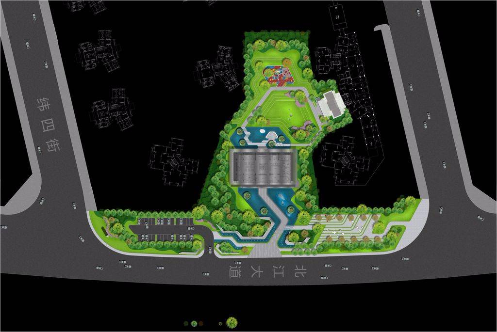 結合故事線索“尋秘”,預留可舉辦600~800 人左右的營銷活動廣場,線性鋪裝及帶狀草坪,搭配趣味可移動坐等,既可以舉辦營銷活動,又可以作為微運動廣場,提供一處可休憩、可交流、可鍛煉的公園式活動廣場。植物上,以叢生樸樹、叢生水蒲桃作為點景大樹,搭配紅花雞蛋花等開花植物,營造水上靜謐、精致的植物圍合空間。
