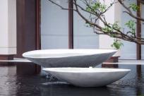 寧靜空靈的水景如明鏡一樣,清澈見底,從肇慶端硯中提煉而成的水景雕塑,漂浮在水面上。氤氳飄渺中,呈現(xiàn)出極具現(xiàn)代感、詩情畫意空間。