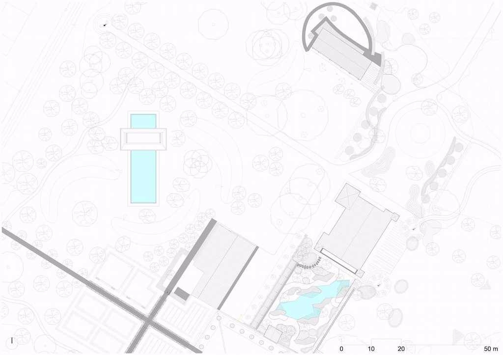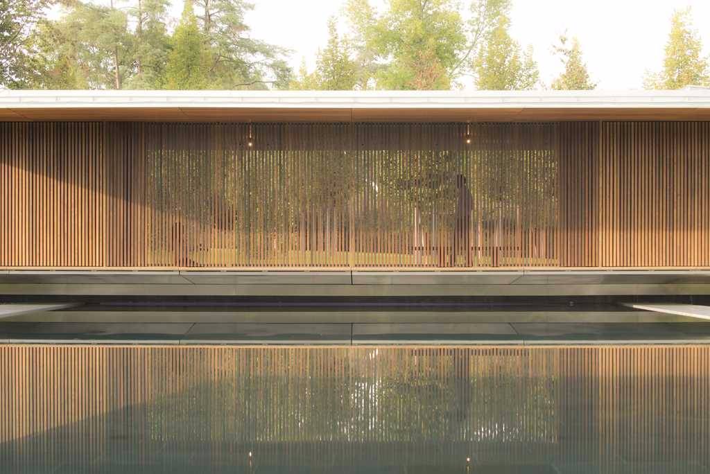 亭子和水面之間詩意的關系通過植物環(huán)境的設計得到了強調(diào),限定了亭子在周圍私人公園中的位置。