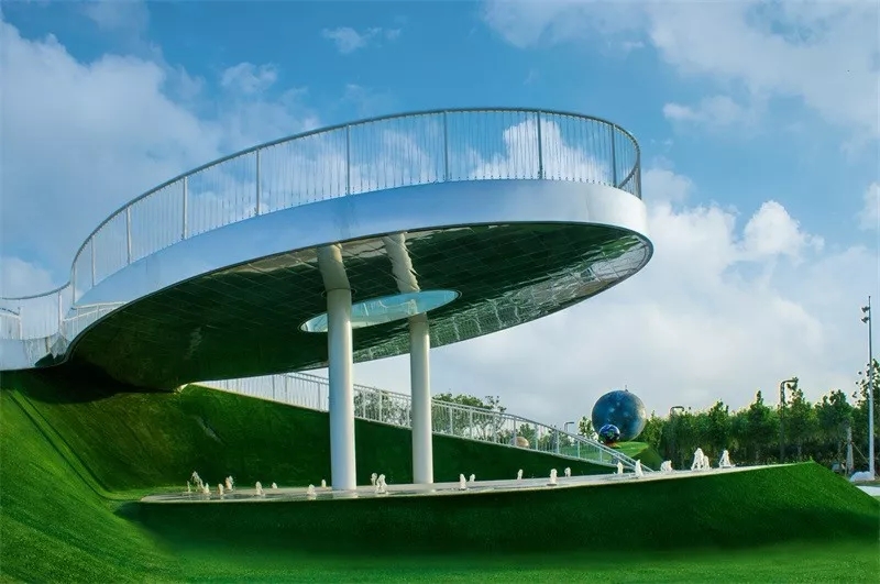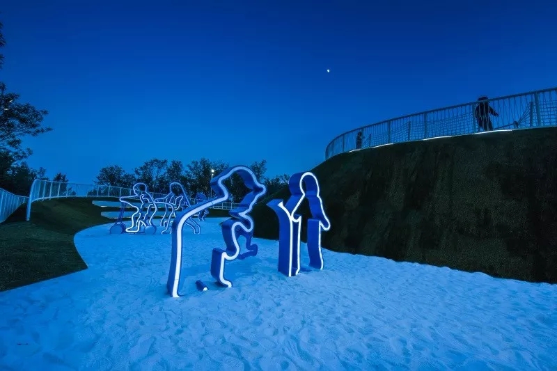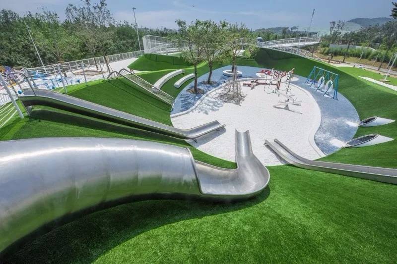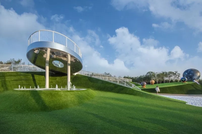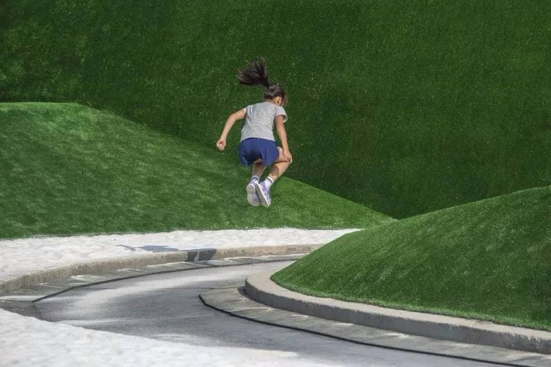 傾斜的鏡面噴泉、瞭望臺(tái)、運(yùn)動(dòng)場(chǎng),再一次顛覆常規(guī)意識(shí),讓兒童感知引力所帶來(lái)的驚喜。