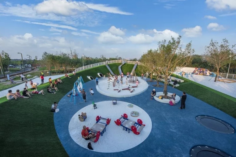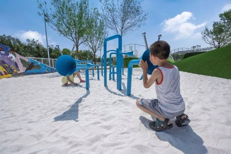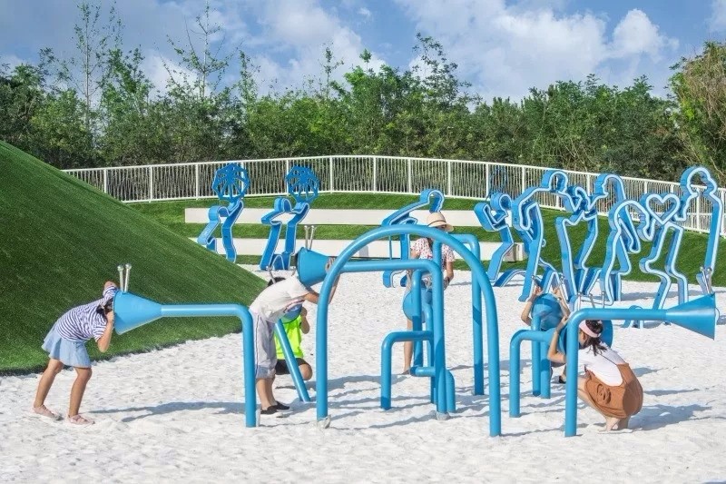 傳統(tǒng)聲光電外部動(dòng)力系統(tǒng)建設(shè)成本高、維護(hù)費(fèi)用高且有較高的安全隱患,創(chuàng)意童趣展園則采用“自動(dòng)力”的無(wú)動(dòng)力系統(tǒng),用自發(fā)的行為激發(fā)場(chǎng)地的活力。