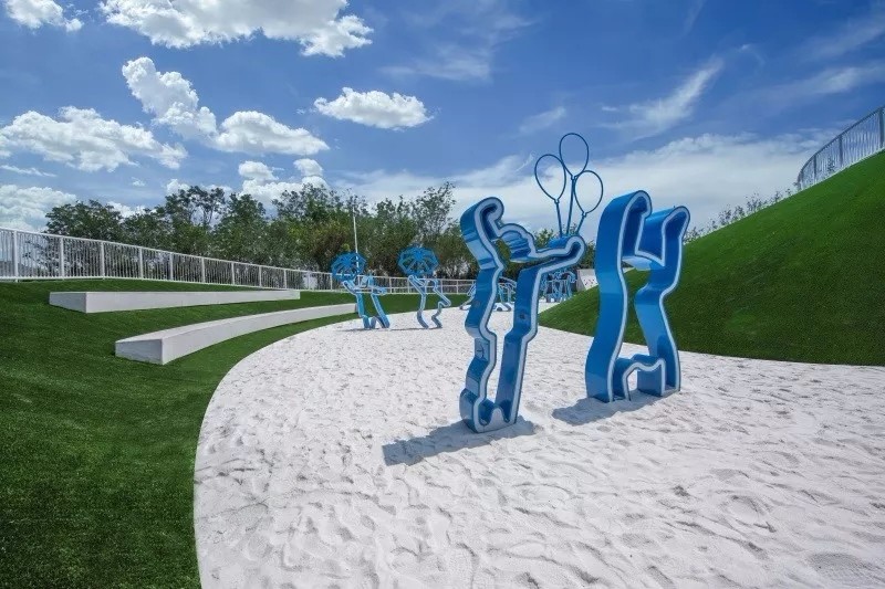 常規(guī)兒童活動(dòng)區(qū)通常采用具體逼真的外觀形態(tài),形象具體單一、建造工藝復(fù)雜、形象低齡化,創(chuàng)意童趣展園則采用抽象外觀,讓一千個(gè)孩子有一千個(gè)專屬的小樂(lè)園。