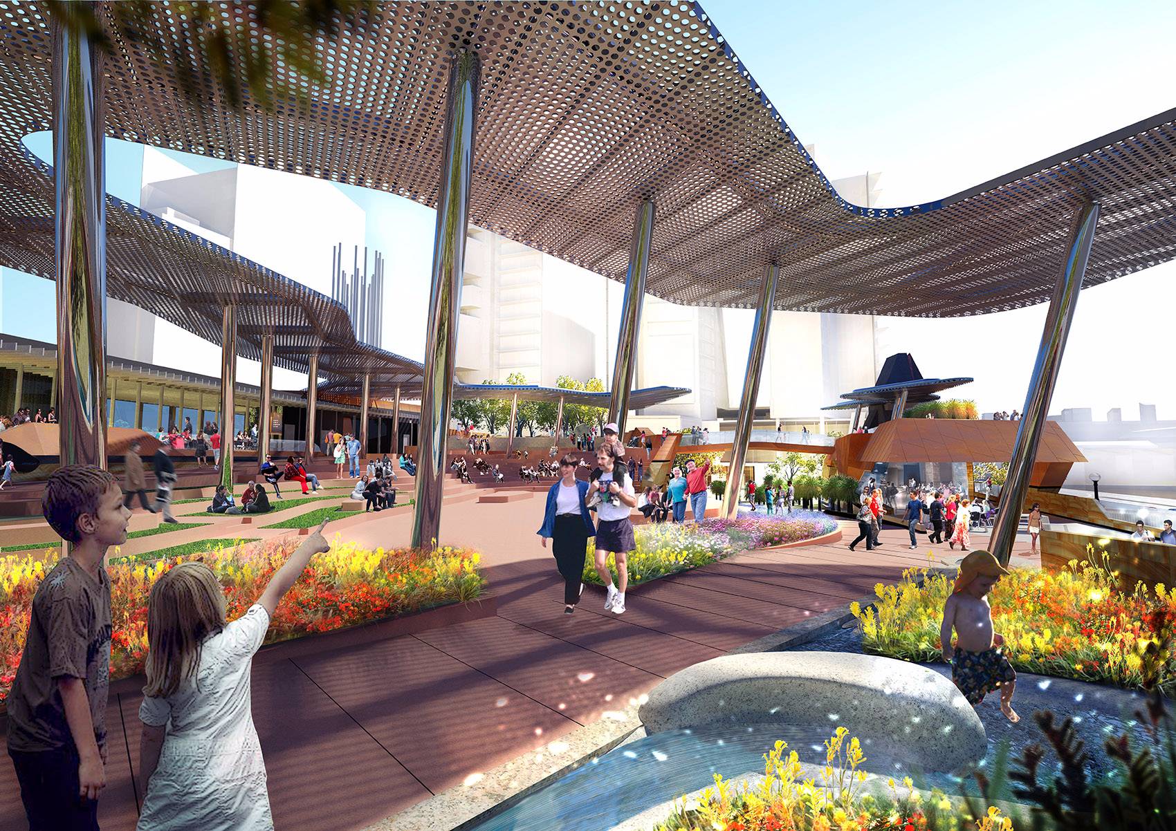 雅干廣場”Yagan Square” 作為連接珀斯城市項(xiàng)目的一部分,是以連結(jié)珀斯中央商業(yè)中心與Northbridge北橋?yàn)槟繕?biāo),設(shè)計(jì)一個(gè)包容且受歡迎的目的地,以此更廣泛地展現(xiàn)當(dāng)?shù)?、柏斯和西澳大利亞的所有特點(diǎn)。作為珀斯最引人注目的重建項(xiàng)目之一,價(jià)值7350萬澳幣(約3.5億人民幣)的雅干廣場是由西澳大利亞政府發(fā)起,并通過大都市重建局(MRA)交付的項(xiàng)目。雅干廣場占地1.1公頃,是珀斯的主要社區(qū)之一,用于舉辦各式會(huì)議、慶典同時(shí)也是熱門的旅游目的地。雅干廣場連接著柏斯市中心火車站和汽車站,不僅是主要的交通樞紐,也是該市最繁忙的行人聚集地之一。