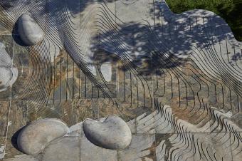 ▼將一系列藝術(shù)雕刻元素應(yīng)用于石材鋪裝的水景,同時(shí)利用Rhino 3D建模,并記錄在Revit中用于后期施工