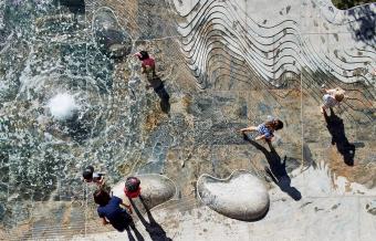 ▼雕塑長約190米,從上層廣場一直延伸到下層購物中心