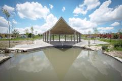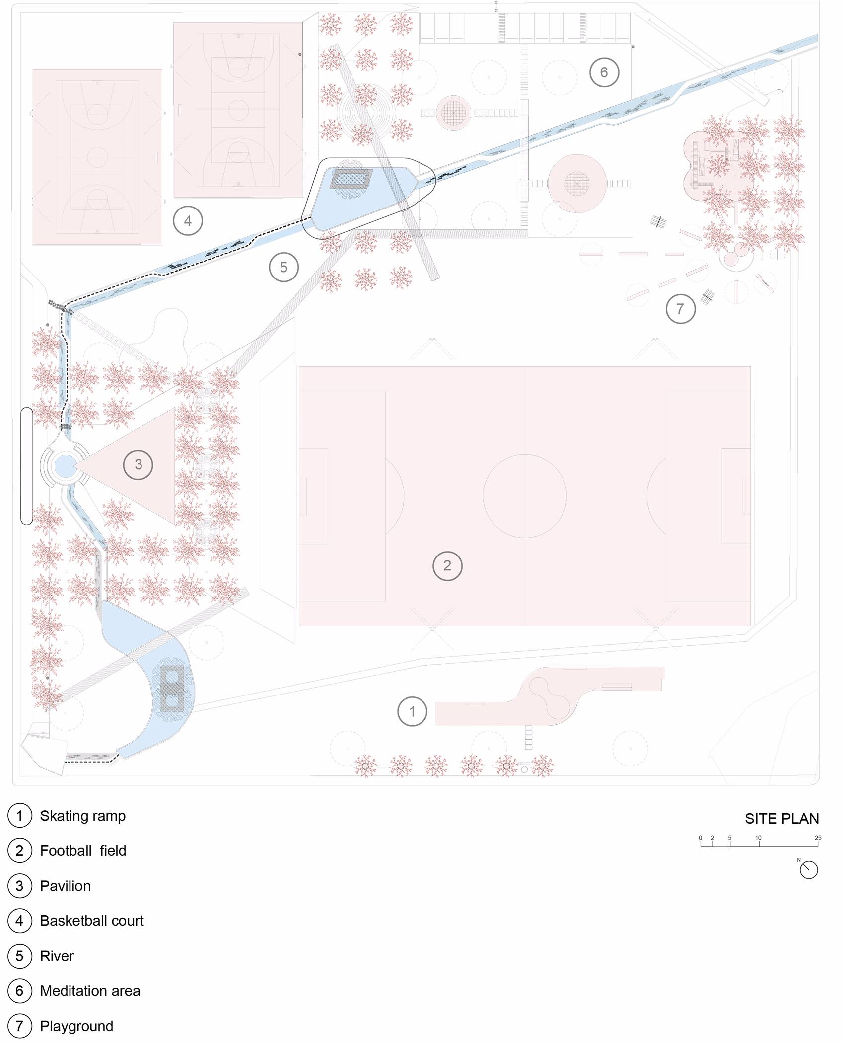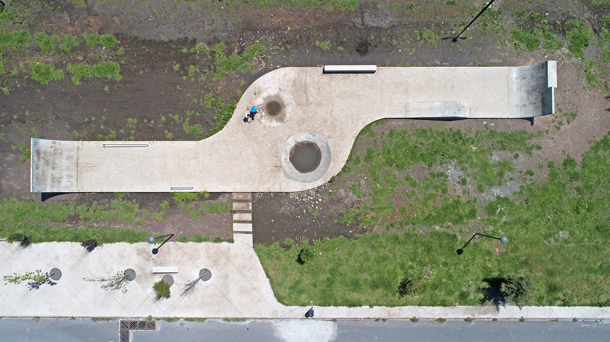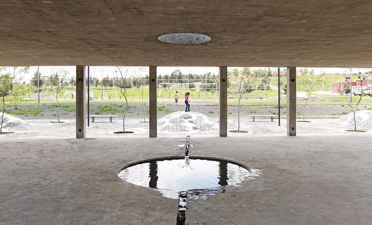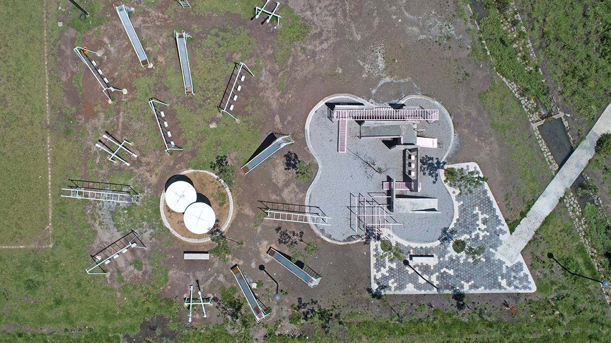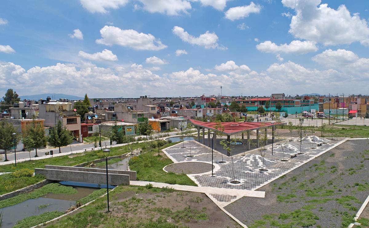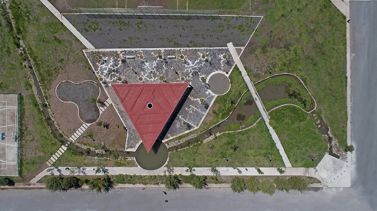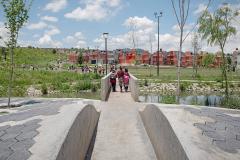 Colinas del Sol公園項目包括了改造阿爾莫利亞德華雷斯的廣場和公園以及Colinas del Sol居住區(qū)。設(shè)計師對占地2公頃的土地進行了優(yōu)化,場地被分為幾個不同的主題區(qū):操場、冥想?yún)^(qū)、滑板坡道、足球場以及公共活動的展館,并加入自發(fā)而有效的建筑干預(yù)。曾經(jīng)部分被污染的水流被改造設(shè)計為公園中的景觀河,并且建立了一個由植物構(gòu)成的緩慢沉降系統(tǒng),以此對水質(zhì)進行凈化。設(shè)計師根據(jù)活動類型和用戶年齡分段設(shè)計了公園的不同部分,促進家庭聚會和社區(qū)融合。