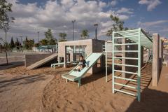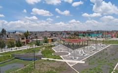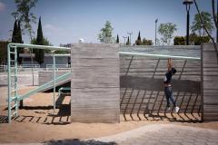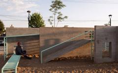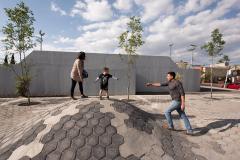 兩個公園根據(jù)特定的自然和社會條件進行設(shè)計,同時在設(shè)計上也采用了共同的元素,確保了建筑和自然環(huán)境之間的和諧統(tǒng)一。這一設(shè)計方式可以適用于任何其他的環(huán)境中。其中水泥塊鋪裝的設(shè)計很容易適應(yīng)任何布局,無論是在自然環(huán)境還是人造環(huán)境中,其次砌塊和現(xiàn)澆混凝土的組合創(chuàng)造了新的設(shè)計模式,產(chǎn)生如同城市掛毯一般的效果。兩個公園中的游樂場設(shè)施均采用混凝土墻和金屬條進行多種組合布置,形成了適宜于不同年齡層的游樂空間。公園不僅僅是促進市民重新融入自然,也是倡導(dǎo)市民們參與環(huán)保的方式。該項目將郊區(qū)土地改造成嵌入城市結(jié)構(gòu)的綠色休閑空間, 如今Colinas del Sol公園和Héroes公園已迅速成為了居民們心愛的城市景點。