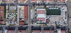 ▼位于郊區(qū)住宅區(qū)中的 Los Héroes公園俯瞰