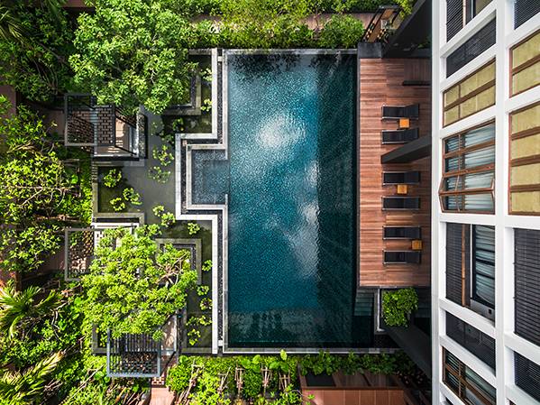 ▼位于游泳池內(nèi)的2棵特色樹(印度橡樹)成為了整個空間的重要焦點