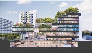 這個(gè)旗艦項(xiàng)目匯集了眾多規(guī)劃設(shè)計(jì)。項(xiàng)目場地是一處平均海拔200英尺(61米)、面積2.2英畝(0.9公頃)的緊湊地塊,開發(fā)面臨的首要挑戰(zhàn)是在高密度且土地稀缺的新加坡探索社區(qū)內(nèi)部的動(dòng)態(tài)關(guān)系。該方案根據(jù)一個(gè)分層的“俱樂部三明治”方法制定,地面層包括一個(gè)充滿活力的公民廣場、庇護(hù)的熱帶社區(qū)空間、零售和販賣中心,通往菜市場和火車站的通道方便快捷。海軍部醫(yī)療中心分布于中間兩層的第二層,包含一個(gè)寧靜的半開放社區(qū)公園的老年護(hù)理中心。托兒中心、老年活動(dòng)中心、天空露臺和老年工作室公寓均位于新建的上層地面層。這三個(gè)不同的階層盡可能緊密的靠近醫(yī)療保健,社會(huì),商業(yè)和其他便利設(shè)施,為城市的多種交叉設(shè)計(jì)和加強(qiáng)世代聯(lián)系創(chuàng)造無限可能。