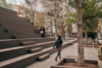 該地區(qū)振興的其中一條途徑是增加咖啡館區(qū)域的數(shù)量和種類。周圍做高的臺階同樣可以為行人提供休息空間。