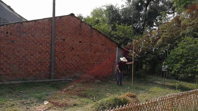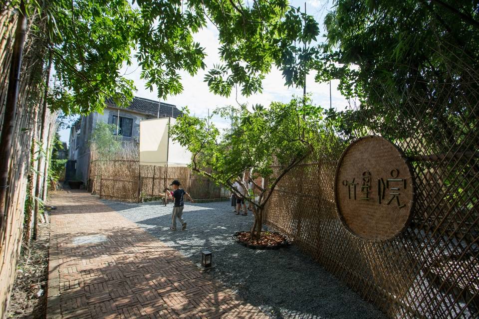 設(shè)計(jì)師選2.5米左右?guī)в小敝裆摇钡闹褡樱M(jìn)行雙面制作。竹子編制后形成自然有機(jī)的立面形態(tài)。雙面竹籬笆可以隱藏籬笆結(jié)構(gòu)柱,提升竹籬笆的景觀品質(zhì)。除此之外,團(tuán)隊(duì)還在籬笆墻靠近人行道路一側(cè),增加竹子密度,加強(qiáng)私人院落的隱私性。