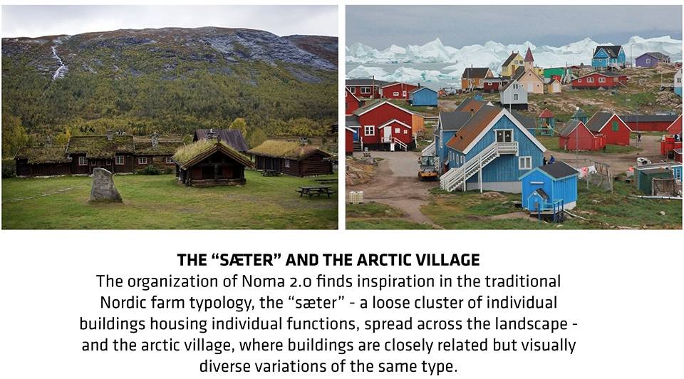 BIG創(chuàng)始人Bjarke描述道:“新Noma餐廳融入了傳統(tǒng)的餐廳理念,將廚房置于整體空間的核心地位,使抵達(dá)區(qū)、休息室、燒烤區(qū)、品酒區(qū)和私人用餐區(qū)全部圍繞在其周圍。這樣的布局方式使廚師們能夠放眼餐廳的每個(gè)角落,同時(shí)也使每位客人能夠感受到’幕后’正在發(fā)生的事情。以玻璃覆蓋的路徑將這些’建筑中的建筑’連接起來(lái),使廚師和客人們能夠隨時(shí)感受天氣、陽(yáng)光和季節(jié)的變化,從而讓自然環(huán)境也成為美食體驗(yàn)中不可或缺的一部分。