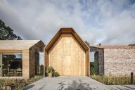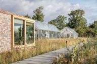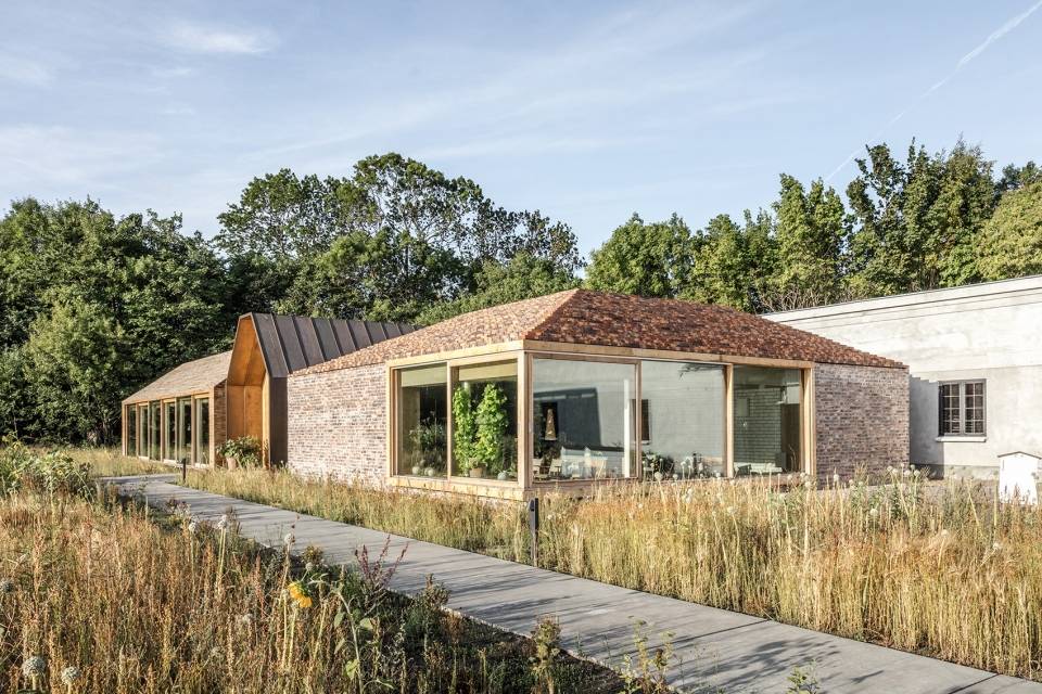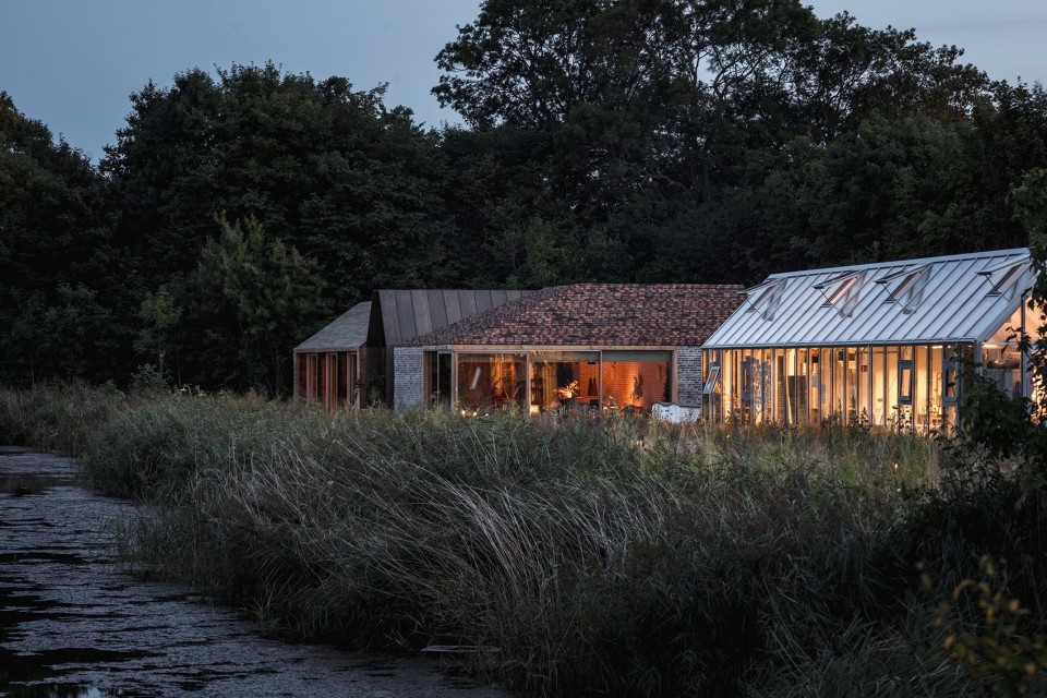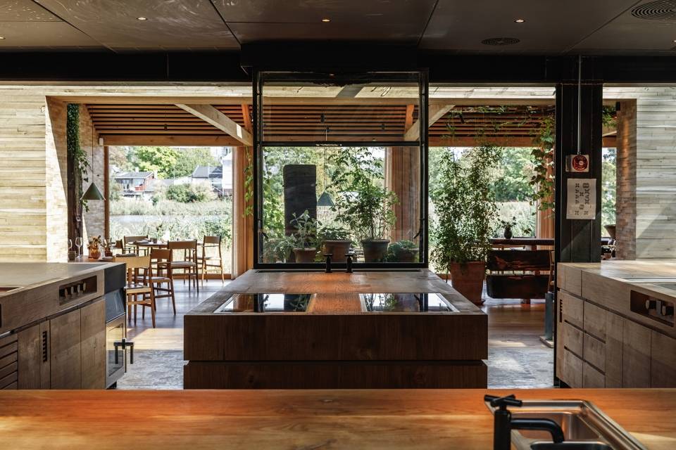 寬闊的天窗和一系列可滑動(dòng)的窗戶將室外花園的景色引入室內(nèi)。在餐廳外部,三個(gè)獨(dú)立的玻璃房則分別用作花房、試驗(yàn)廚房和烘焙房??腿藗兛梢月接谶@些建筑之間,感受具有北歐特色的材料和建造技術(shù):燒烤區(qū)是一個(gè)可走入式的寬闊小屋,休息室則是一個(gè)完全由磚料打造的、帶有壁爐的溫暖空間。
