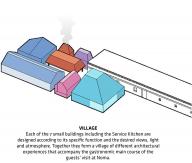 該設(shè)計(jì)方案的核心理念是消除餐廳中孤立的功能,并將其重新組織為一個(gè)彼此獨(dú)立卻又相互連接的群體。這11個(gè)功能空間圍繞著中央廚房分布,每個(gè)空間均是根據(jù)功能需求采用最優(yōu)質(zhì)的材料量身打造。