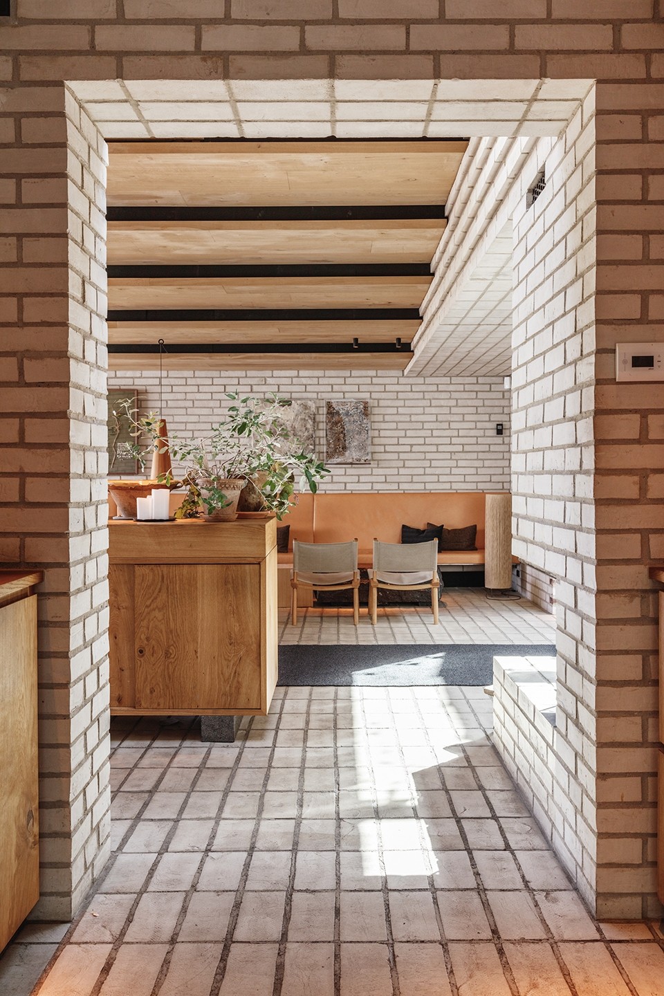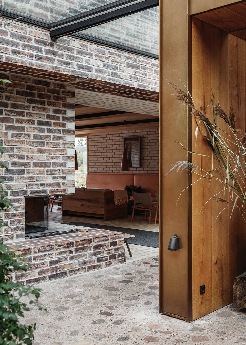 ▼休息室是一個(gè)完全由磚料打造的、帶有壁爐的溫暖空間