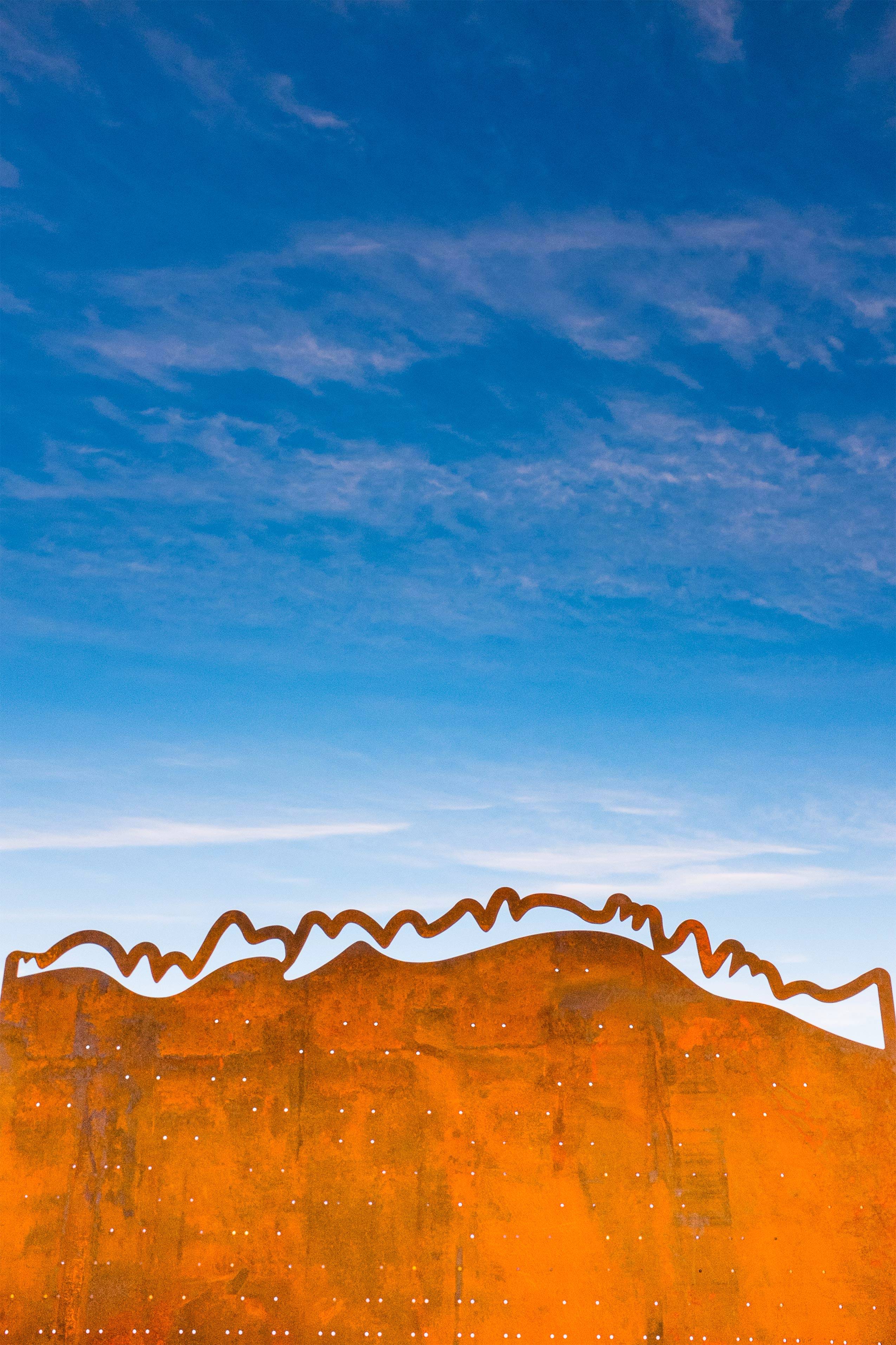 除當?shù)刈匀徊牧虾臀奈镆酝猓惯€使用耐候鋼材料制作了一面紀念墻。長期海風的侵蝕使耐候鋼板特有的銹色變得更加鮮活,反射出北極光和遠處北極柳的色彩。作為文化景觀,公墓用簡單的設計手法展示了文化符號和傳統(tǒng),既讓來訪者對當?shù)匚幕型硎?,也為社區(qū)居民提供了一個可供頌揚和回憶的公共空間。