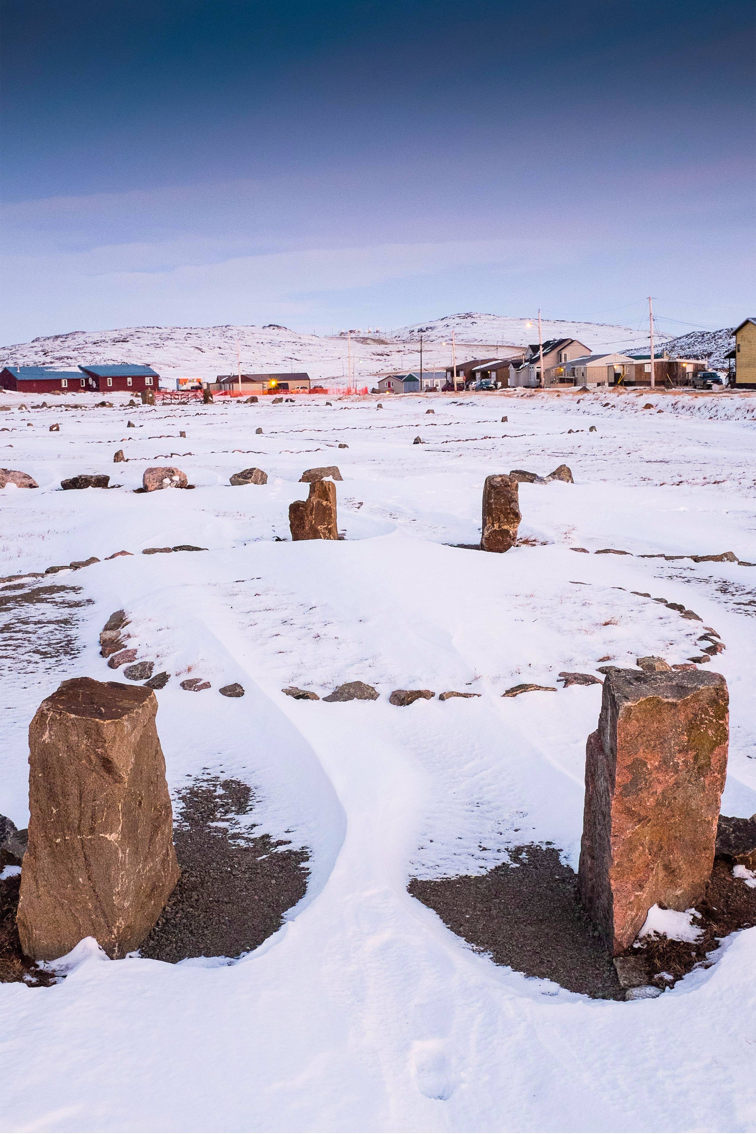 伊魁特市政公墓位于加拿大東部北極地帶的努納武特地區(qū),占地面積3英畝,從2014年10月開始正式對外開放。在景觀設計師的主導下,多個跨領域學科專家組成項目團隊,負責項目從選址、設計到施工、運營的全流程。為了最終設計方案能夠更好地彰顯當?shù)匾蚣~特文化,體現(xiàn)因紐特人與這片土地的情感,團隊與因紐特族長老和委員會一直保持著密切聯(lián)系。最終選定的場地占地1.2公頃,交通便捷,對當?shù)卮嗳醯耐寥罈l件破壞較小,同時滿足了居民的愿望,讓公墓面向大海。