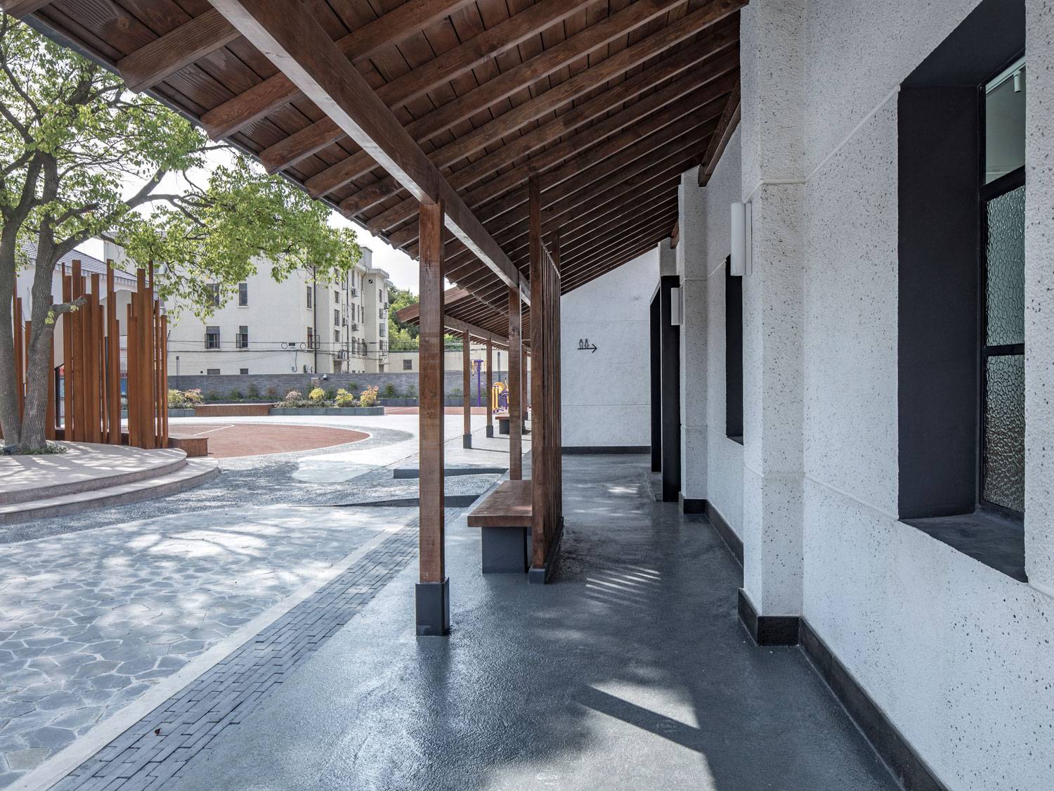 一開始看到設(shè)計(jì)任務(wù)書上寫著建筑外貌要體現(xiàn)中國(guó)特色、江南風(fēng)格,心里是有些抵觸的。場(chǎng)地原有建筑的造型、尺度以及構(gòu)造都具有非常典型的地域風(fēng)格,故無(wú)意抹去這種在世的本土特色,只在此基礎(chǔ)之上加上木結(jié)構(gòu)的屋頂,使空間尺度更加貼近民居建筑的身體感受;并按照相應(yīng)的建筑外墻決定合適的木柱跨度,木檁條、椽條的尺寸、比例以及構(gòu)造,以滿足結(jié)構(gòu)力學(xué)的需求。這里形式在追尋功能的同時(shí),也在追尋一種老百姓也能一眼就感知到的東方韻味。